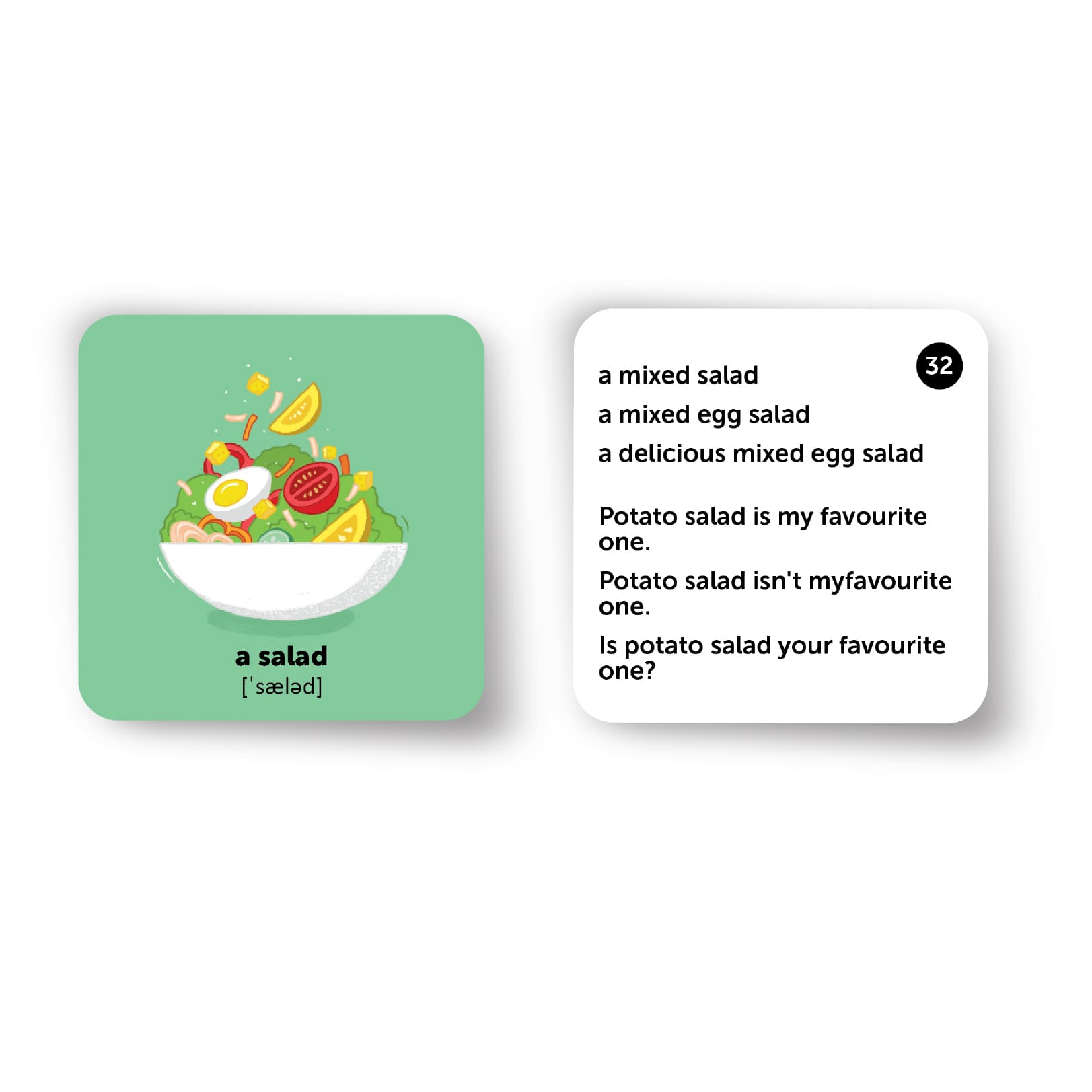 Шкільна англійська «Спорт і дозвілля» – тематичний набір карток для учнів 3-5 класів. У наборі 95 двосторонніх карток із аудіосупроводом. Кожна картка – це з одного боку велике зображення предмета з теми, слово англійською та транскрипція до нього, а з іншого боку – декілька словосполучень англійською та речення у трьох формах (стверджувальній, заперечній, запитальній).